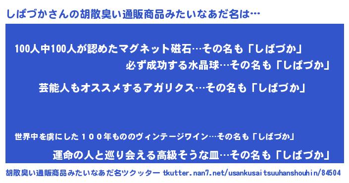 | 男性向けラノベタイトル風あだ名 | 『しばづか~年齢イコール彼女いない歴の魔法使い~』 |