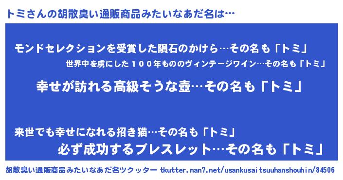 | ヘコむあだ名 | 『牛乳』『トミっふぃ~』『トミ(笑)』 |