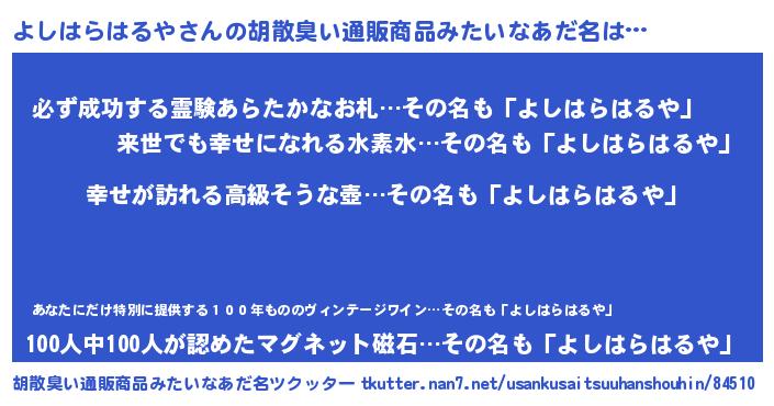 | ファンタジー風あだ名 | 『エターナルヨシハラハルヤー』 |