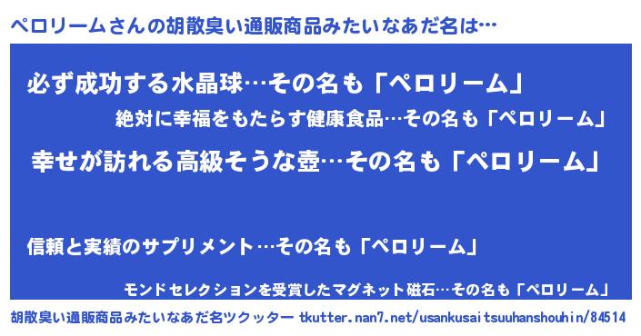 | 男性向けラノベタイトル風あだ名 | 『やはりペロリームの青春ラブコメはまちがっている 』 |