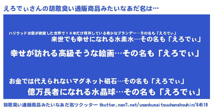 | 女子向けラノベタイトル風あだ名 | 『えろでぃの雑貨屋さん』 |