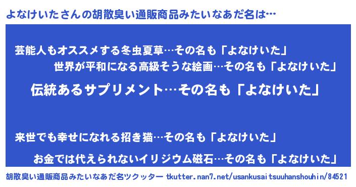| ヘコむあだ名 | 『よなお』『酢こんぶ』『よなもー』 |