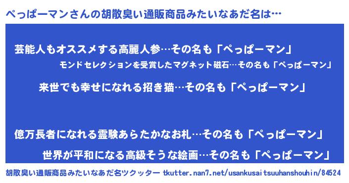 | 意味不明あだ名 | 『永久保存ぺっぱーマン』 |