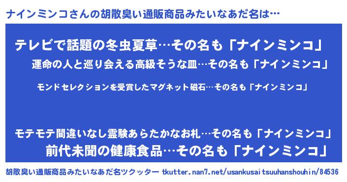 | ヘコむあだ名 | 『ナインミンコ(笑)』『なまこ酢』 |