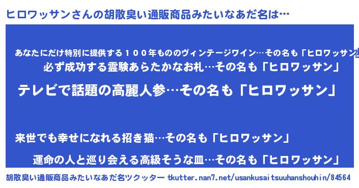 | 意味不明あだ名 | 『自称ヒロワッサン』 |