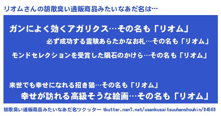| 意味不明あだ名 | 『眠気覚ましガムリオム味』『自称リオム』 |
