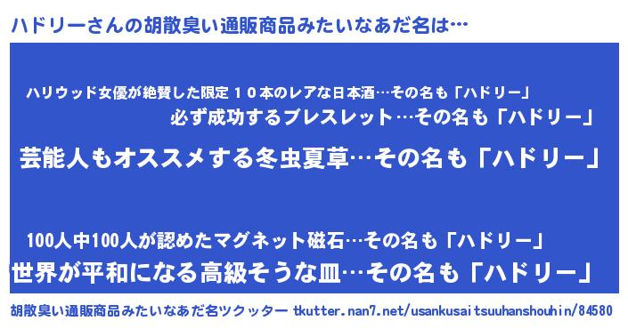 | ヒーロー風カッコイイあだ名 | 『最強戦士ハドリー』『仮面ハドダー』 |