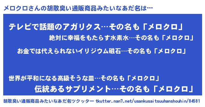 | ヒーロー風カッコイイあだ名 | 『愛の使者メロクロ』『銀牙騎士メロ』 |