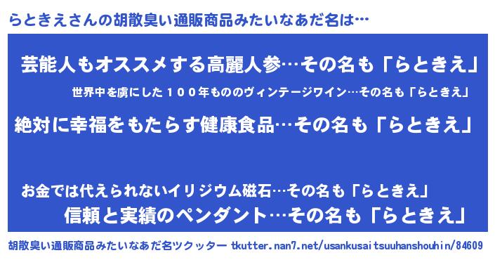| 意味不明あだ名 | 『永久保存らときえ』『自称らときえ』 |