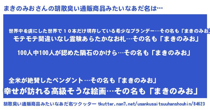 | ヒーロー風カッコイイあだ名 | 『正義の使者まきのみお』『仮面マキダー』 |