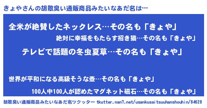 | ヒーロー風カッコイイあだ名 | 『サイバー戦士キョヤ』『天弓騎士キョ』 |