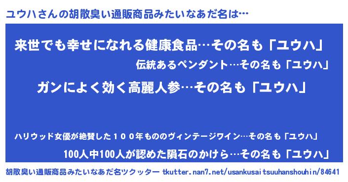 | 女子向けラノベタイトル風あだ名 | 『ユウハなんてお断りですっ。』 |