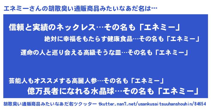 | 意味不明あだ名 | 『エネミーフォーエバー』『自称エネミー』 |