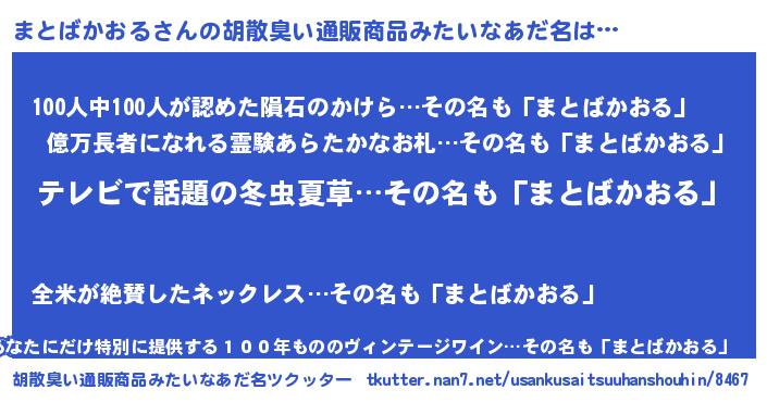 | 意味不明あだ名 | 『自称まとばかおる』 |