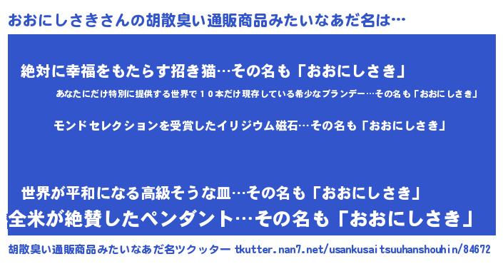 | 男性向けラノベタイトル風あだ名 | 『ノーゲーム・ノーオオニシサキ』 |