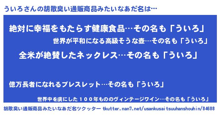 | ヘコむあだ名 | 『ういっ子』『ういろ(爆)』 |