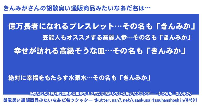 | 意味不明あだ名 | 『しいたけ科きんみか属』『自称きんみか』 |