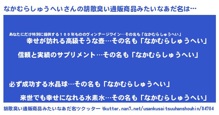 | 男性向けラノベタイトル風あだ名 | 『ナカムラシュウヘイスレイヤー』 |