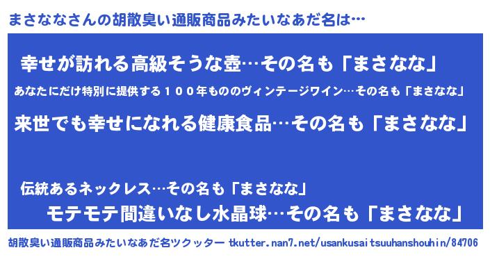 | ヒーロー風カッコイイあだ名 | 『ネオマサナナ』『ウルトラまさななマン』 |
