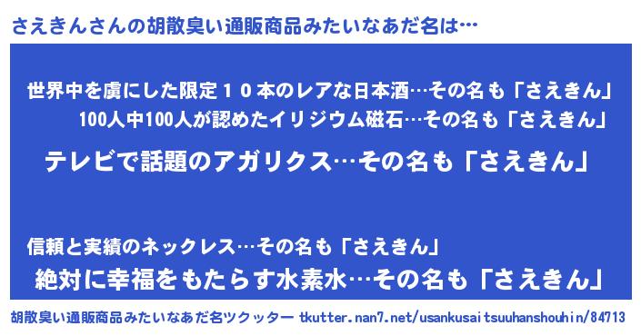 | ヘコむあだ名 | 『さえきん(笑)』『さえ太郎』 |