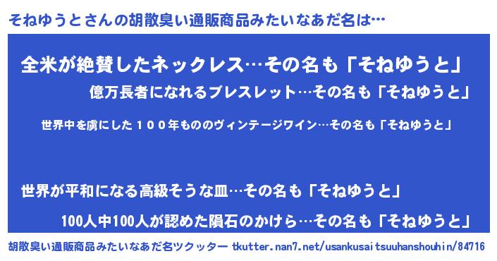 | ピコ太郎風あだ名 | 『ソネ次郎』『ソソ太郎』『ソコ次郎』 |
