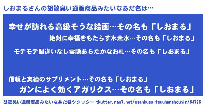| ヘコむあだ名 | 『しおもー』『牛乳』『しおまる(笑)』 |