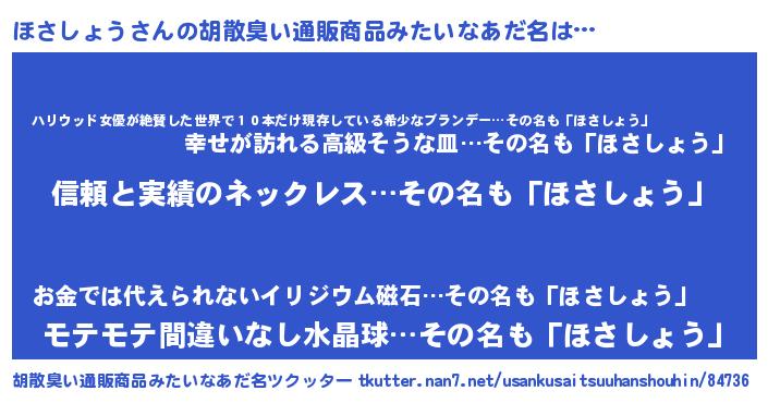 | 意味不明あだ名 | 『とにかく怪しいほさしょう』 |