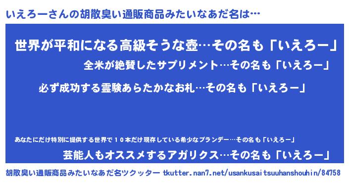| 意味不明あだ名 | 『ペロリンいえろー』『自称いえろー』 |