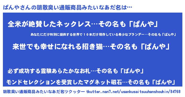 | ヘコむあだ名 | 『ぱんや(小並感)』『ぱんっぺ』 |