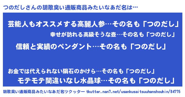 | 意味不明あだ名 | 『とにかく怪しいつのだし』 |