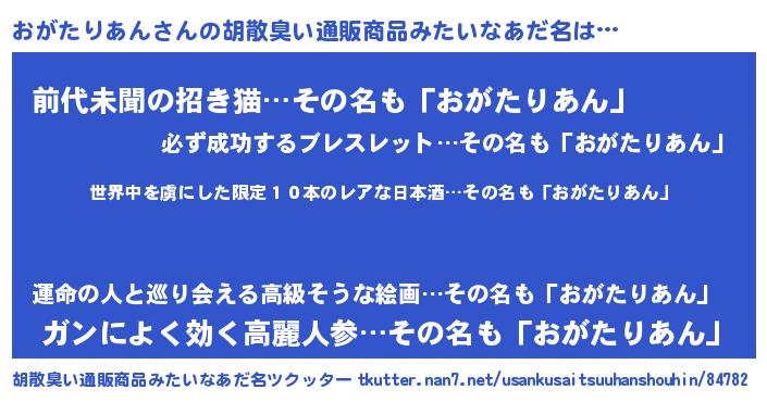 | 意味不明あだ名 | 『住所不定無職おがたりあん(39歳)』 |