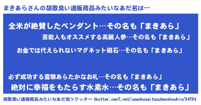 | ヒーロー風カッコイイあだ名 | 『友情の使者まきあら』『幻影騎士マキ』 |