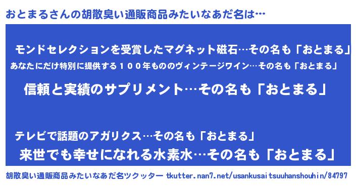 | 意味不明あだ名 | 『とにかく怪しいおとまる』 |