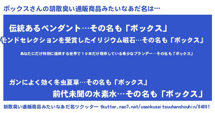 | ヘコむあだ名 | 『ボッっぺ』『ボックス(笑)』 |