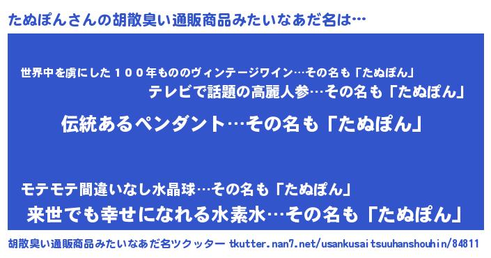 | ヘコむあだ名 | 『たぬっちょ』『たぬぽん(爆)』 |