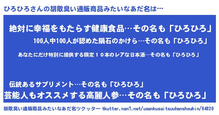 | ヘコむあだ名 | 『ひろひろ(爆)』『ひろっぺ』 |
