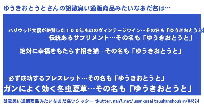 | ヘコむあだ名 | 『ゆうきおとうと(笑)』『ゆうお』 |