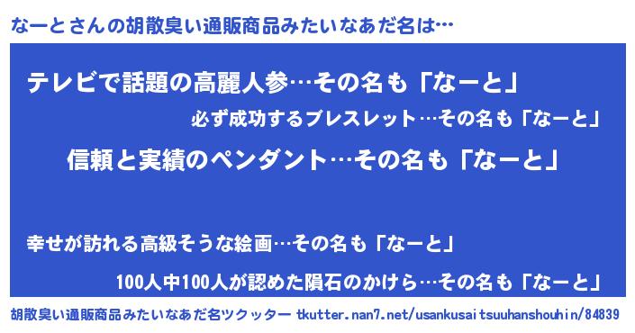 なーとさんの胡散臭い通販商品みたいなあだ名をツクッター!