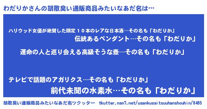 | ヘコむあだ名 | 『酢こんぶ』『わだりか(爆)』 |