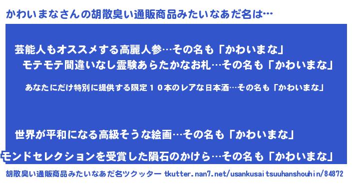 | 意味不明あだ名 | 『住所不定無職かわいまな(56歳)』 |