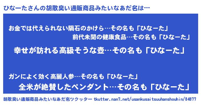 | 欧米人風あだ名 | 『ひなーたクリステル』 |