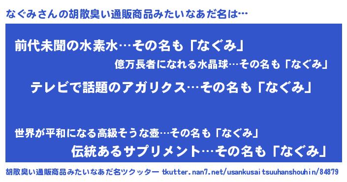 | ヘコむあだ名 | 『なぐみ(笑)』『なぐっぺ』 |
