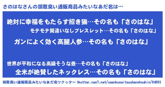 | ヘコむあだ名 | 『さのはな(小並感)』『さのお』 |