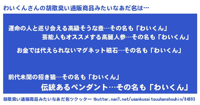 わいくんさんの胡散臭い通販商品みたいなあだ名をツクッター!