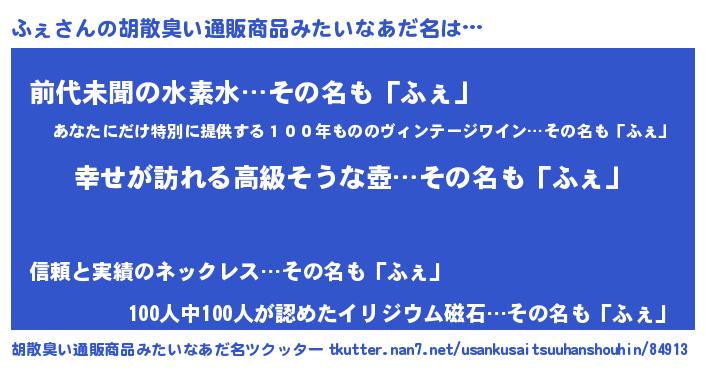 ふぇさんの胡散臭い通販商品みたいなあだ名をツクッター!