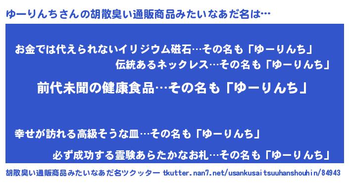 | ヘコむあだ名 | 『ゆーりんち(笑)』『ゆーもー』 |
