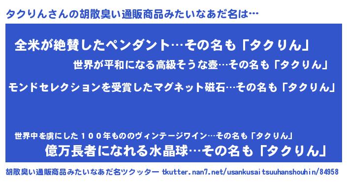 | ヘコむあだ名 | 『タクお』『タクもー』『酢こんぶ』 |
