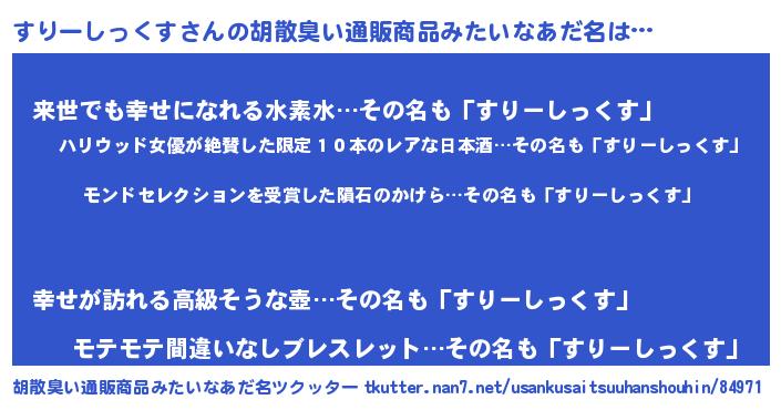 | 欧米人風あだ名 | 『ダニエルすりーしっくす』 |