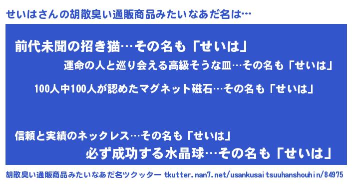 | ヘコむあだ名 | 『せいは(小並感)』『せいにー』 |
