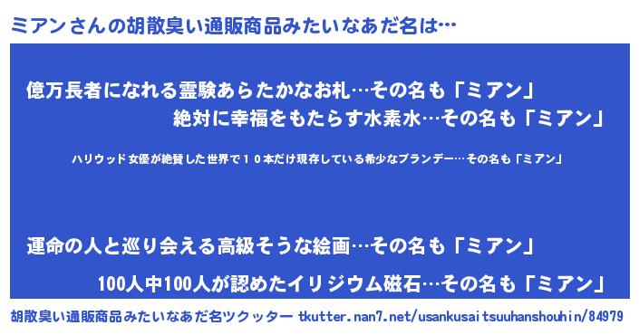 | ヒーロー風カッコイイあだ名 | 『仮面ミアダー』『スーパーミアン』 |